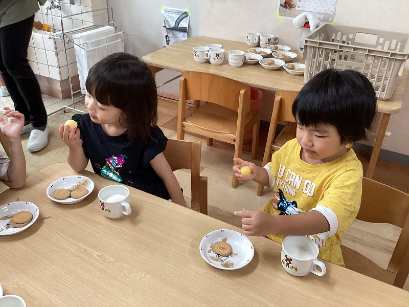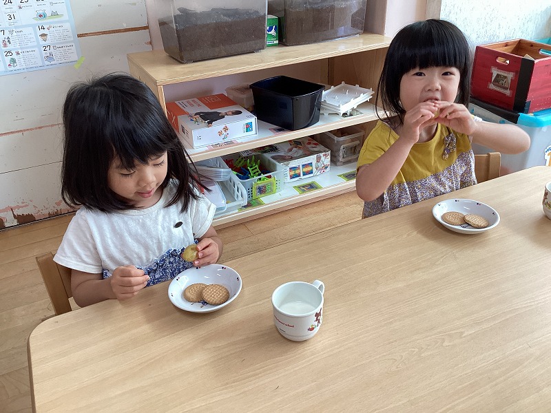 おやつの時間になると、「おいしい!!」「ちょっぴり塩味がする」とみんな美味しそうに食べていました。