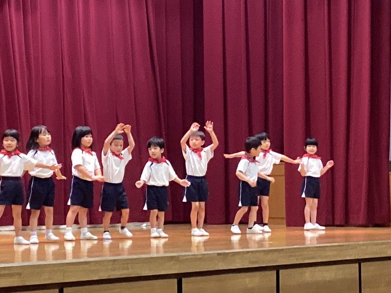 夕日寺小学校で行われ文化祭に出演しました。たくさんのお客さんと大きな舞台に緊張していた子もいましたが元気よく歌も踊りも披露することが出来、とてもかわいい姿でした。