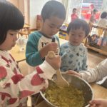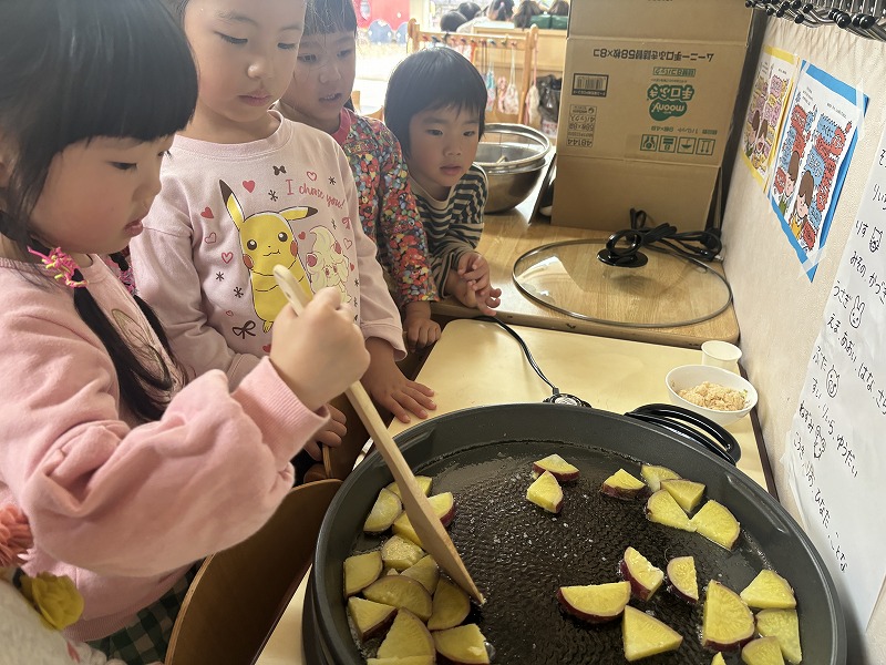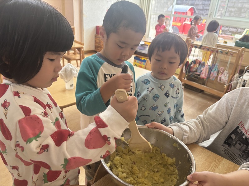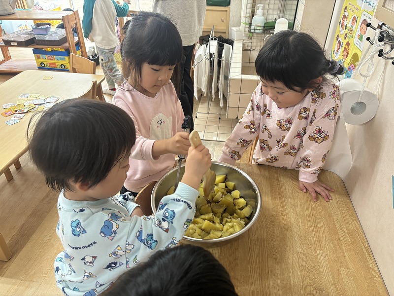 以前、みんなで収穫したさつまいもを使ってクッキングをしました。