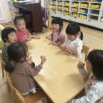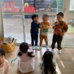 また、LaQでマイクを作り、『ハハハハ ハロウィン!』や『ミッション!健・康・第・イチ』など遊戯で踊る曲を歌ったり、廃材を使って血小板(はたらく細胞)のカバンを作ったりと、お部屋でも思い思いの表現を楽しむ子どもたちです。