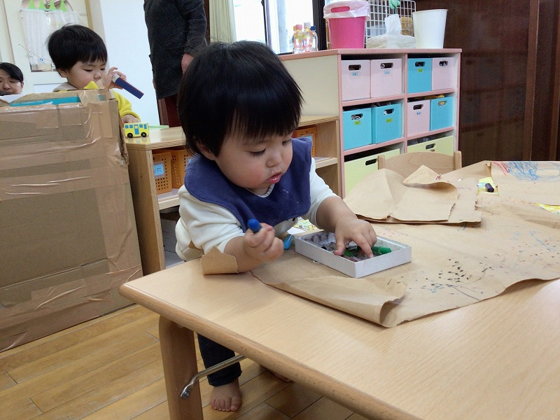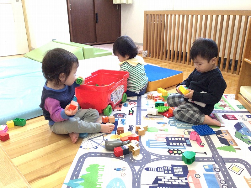 すみれ組では、絵本を読んだり、ブロックをしたり、マットに転がったりと1年間過ごした部屋はすっかり我が家のようにくつろぎ過ごす子どもたちでした。次は、すずらん組!!来年度に向けて一足早く隣の部屋に遊びに行くと、ままごとや手作り玩具、パズルなど新しい遊びに夢中になっていました。今年度も残りわずかとなりました。来年度へ向けみんなで少しずつ準備をしながら、残りの日々も楽しみたいと思います。