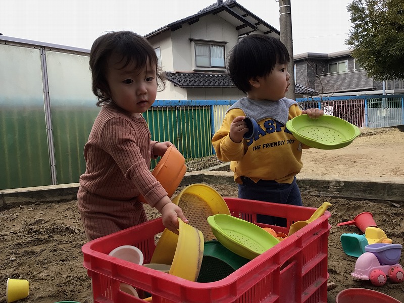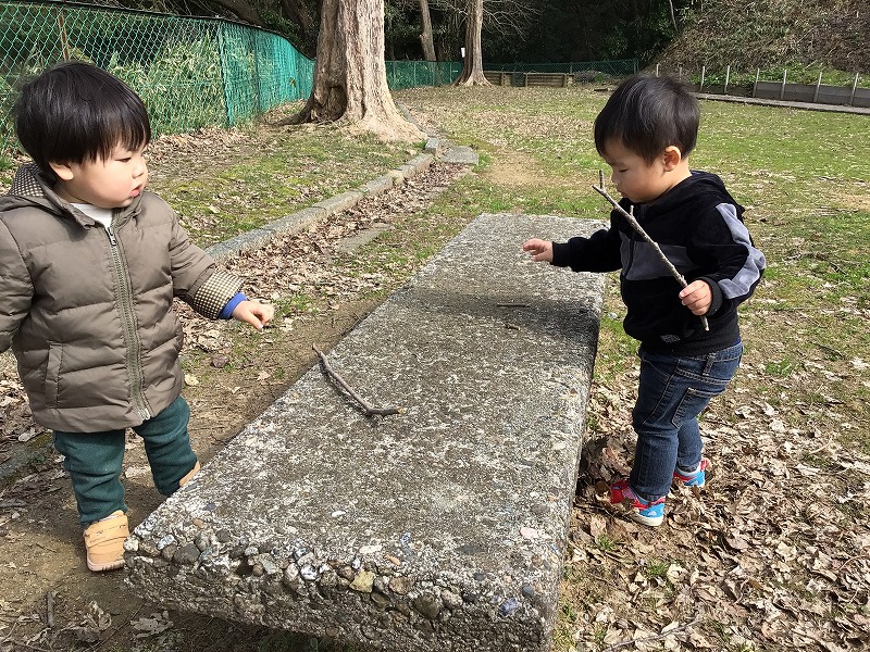ぽかぽかと天気もよく雪解けが始まり、外に出て遊ぶ機会も増えてきました。第2公園まで散歩に行ったり、園庭に出て砂遊びをしたりと春の訪れを感じながらのびのびと外遊びを楽しんでいます!