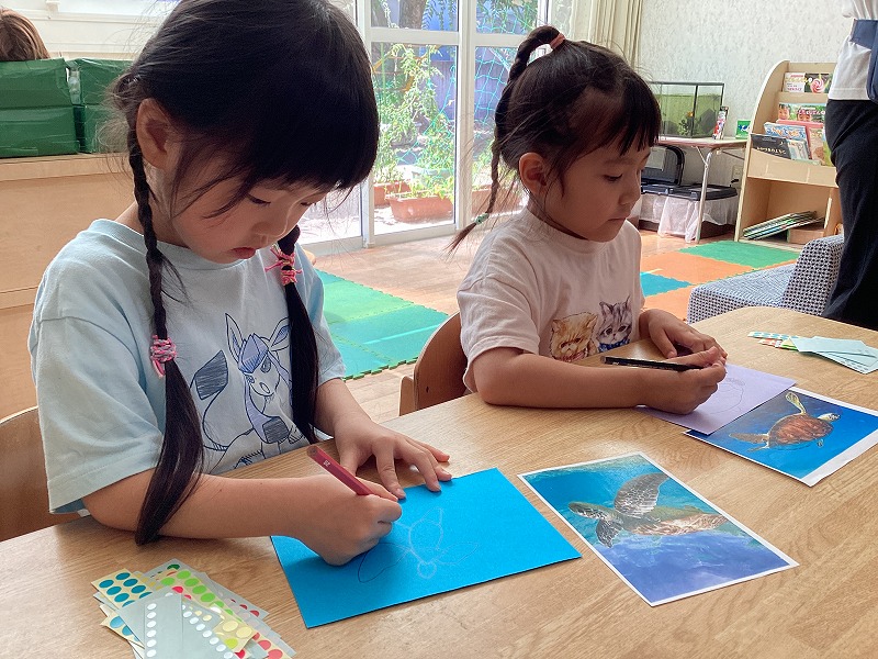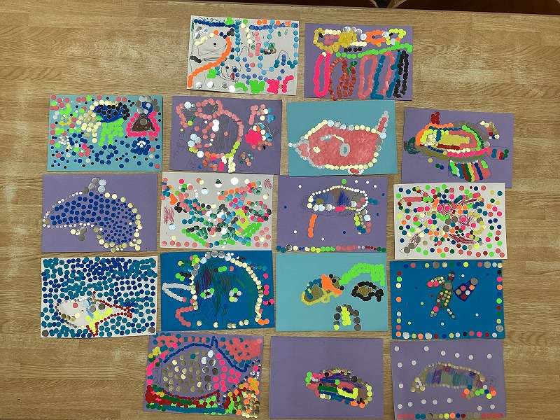 「海の生き物」をテーマに、シールアートに挑戦しました。