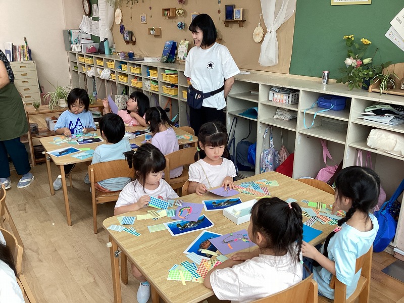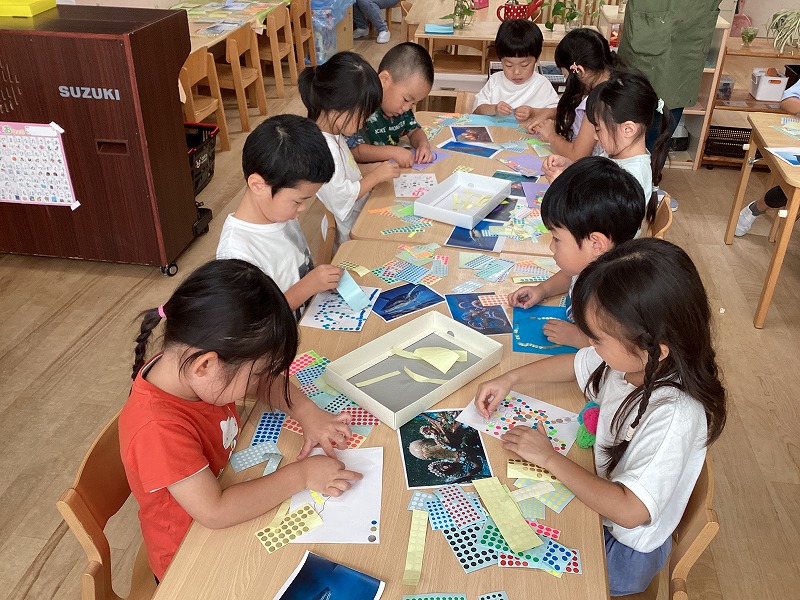 同じ色のシールを貼っていく子もいれば、カラフルに仕上げる子など様々でした。