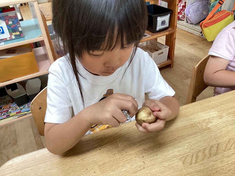 ばら組さんがさんのう農園で掘ってきてくれたジャガイモを使い、お部屋でカレー作りをしました。