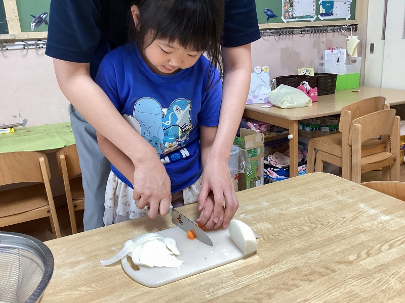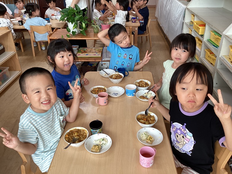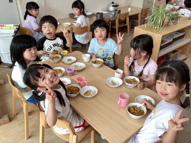 「いつものカレーよりおいしい気がする!!」と出来上がりに大満足の子どもたちでした。