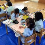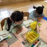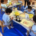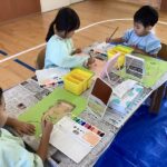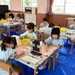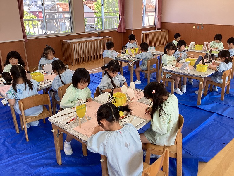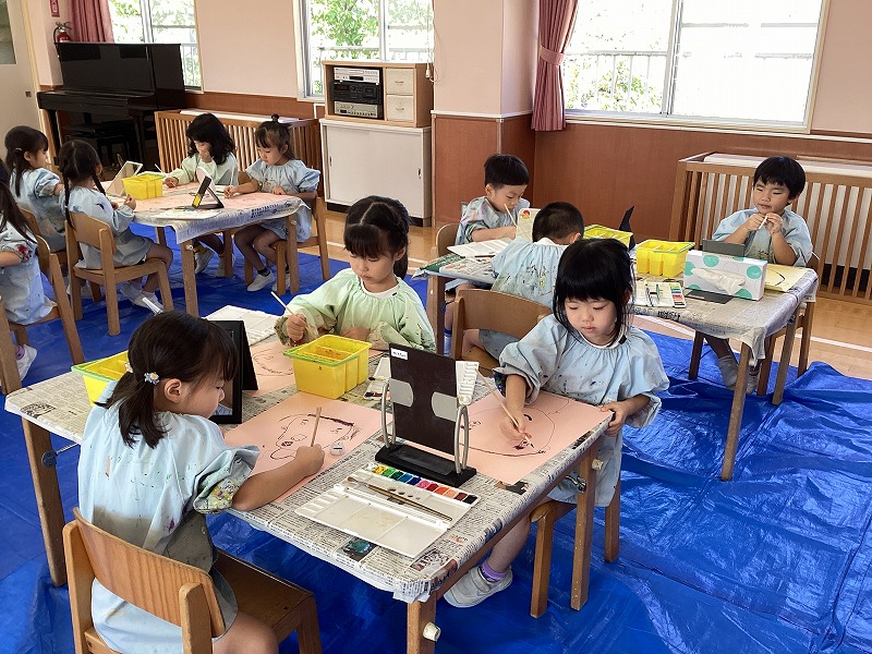 普段使わない道具に子どもたちも興味津々で「これで色つくん?」「すごい!ほんとに描けた!!」と大興奮でした。