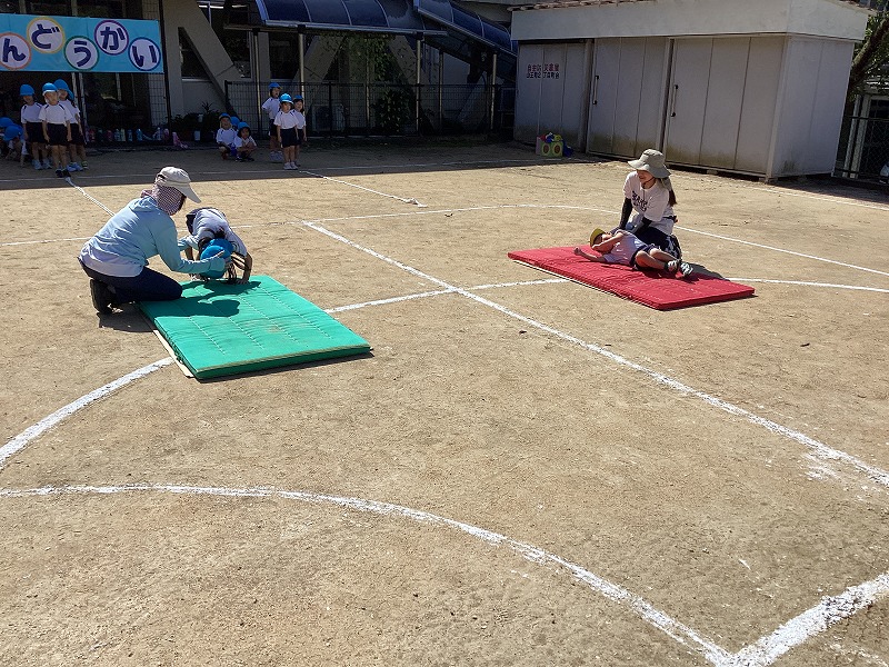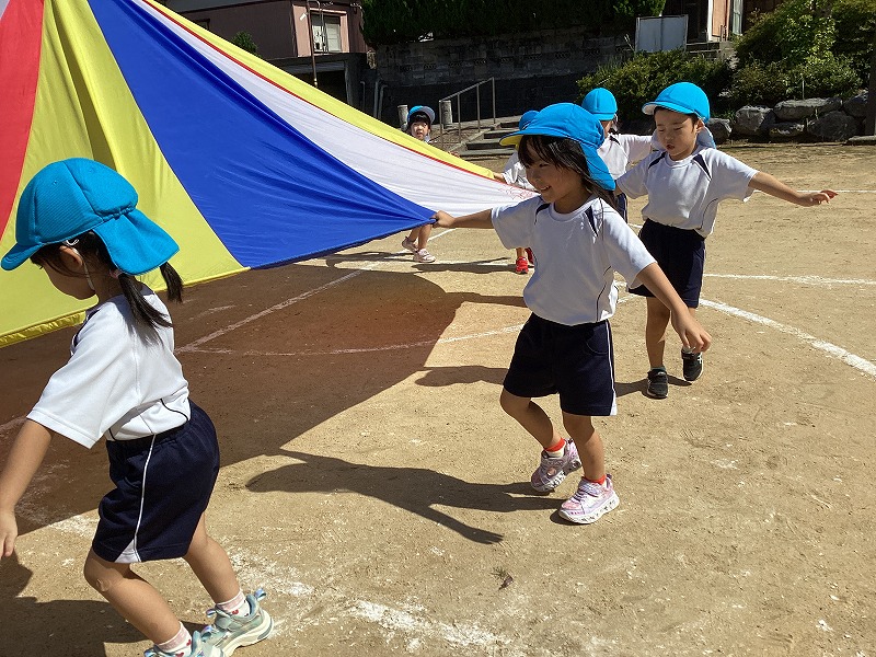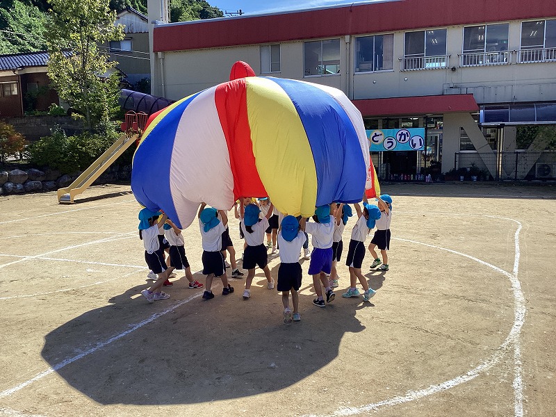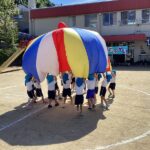 運動会に向け、パラバルーンやとび箱に一生懸命取り組む子どもたち。