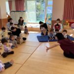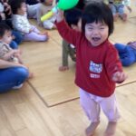笑うことで体の細胞が元気になり健康につながるということで、ジャンケンやボール投げ、野球遊び、楽器遊びなどをしながら思い切り笑って遊びました!