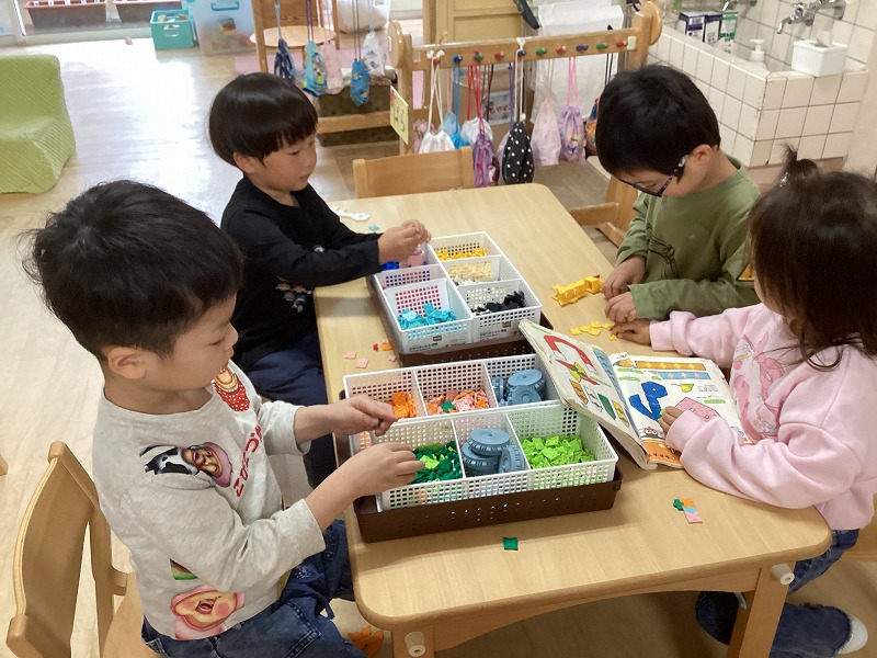 最近、LAQに集中して遊ぶ子が増えてきました。細かいパーツを扱うのは大変ですが、平面の作品から立体の作品が作れるようになってきたことでLAQがどんどん楽しくなってきたようです。