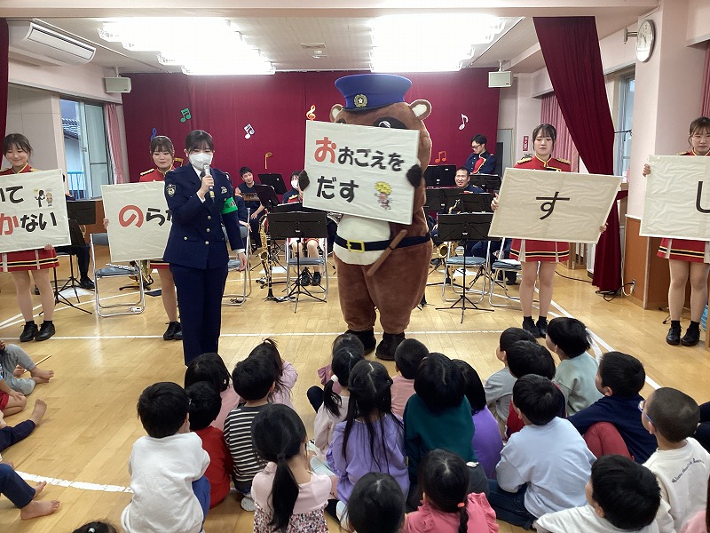 また、曲と曲の合間には横断歩道の渡り方を確認したり、『いかのおすし』の約束を教えてもらう時間もありました。