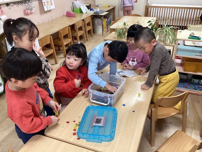 お礼を言った後は早速開けてLaQで遊び始めていました。