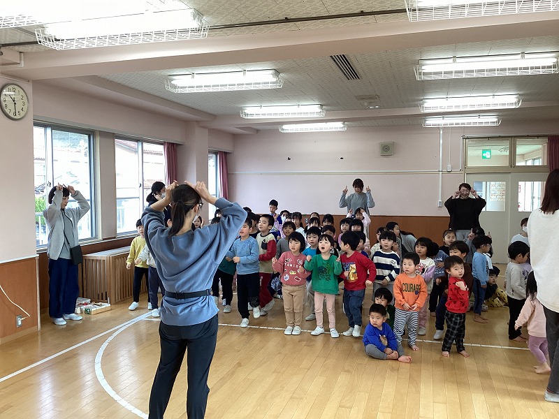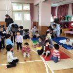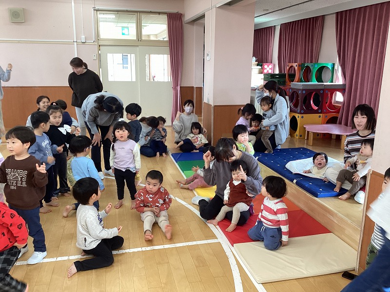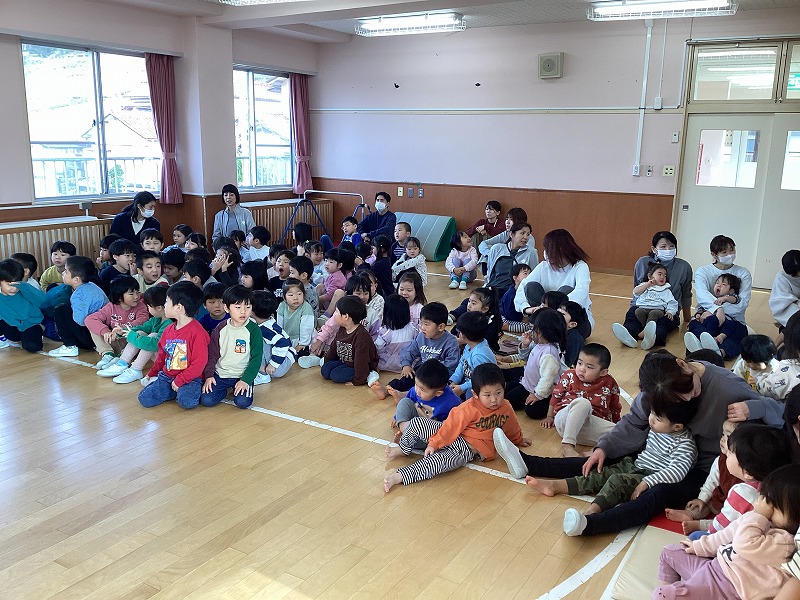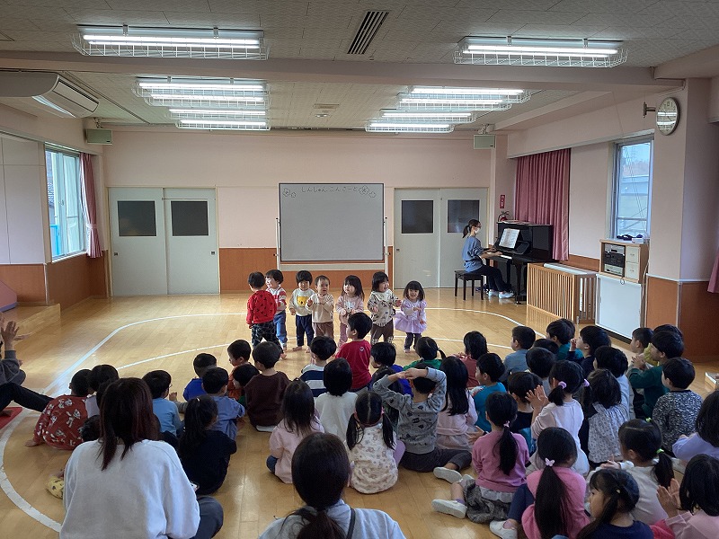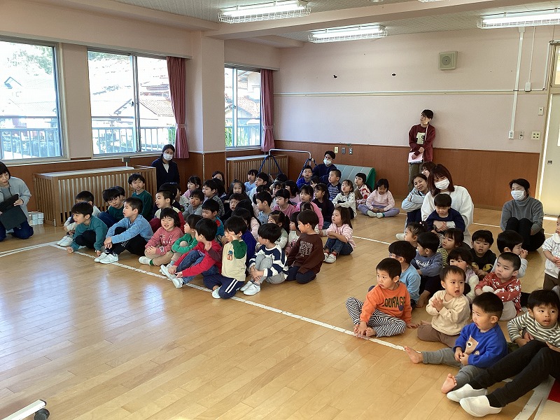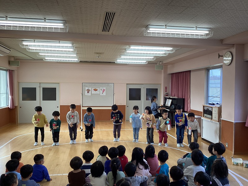 『おしょうがつ』や『コンコンクシャンのうた』『雪』など、この時期ならではの曲がたくさんあり、子ども達もリズムに合わせて体を揺らしたり、一緒に歌をうたったりしながら楽しそうに音楽に耳を傾けていました。