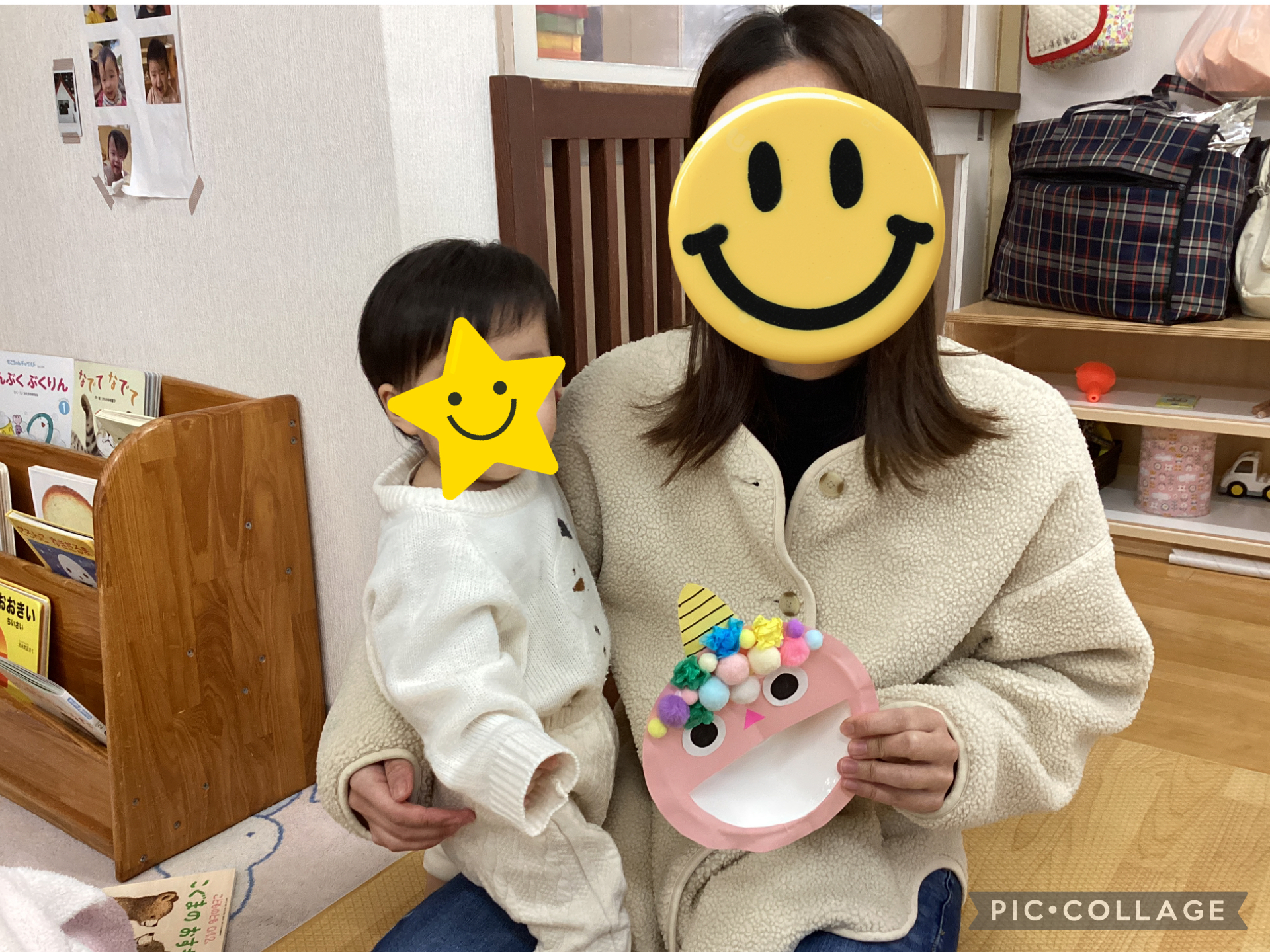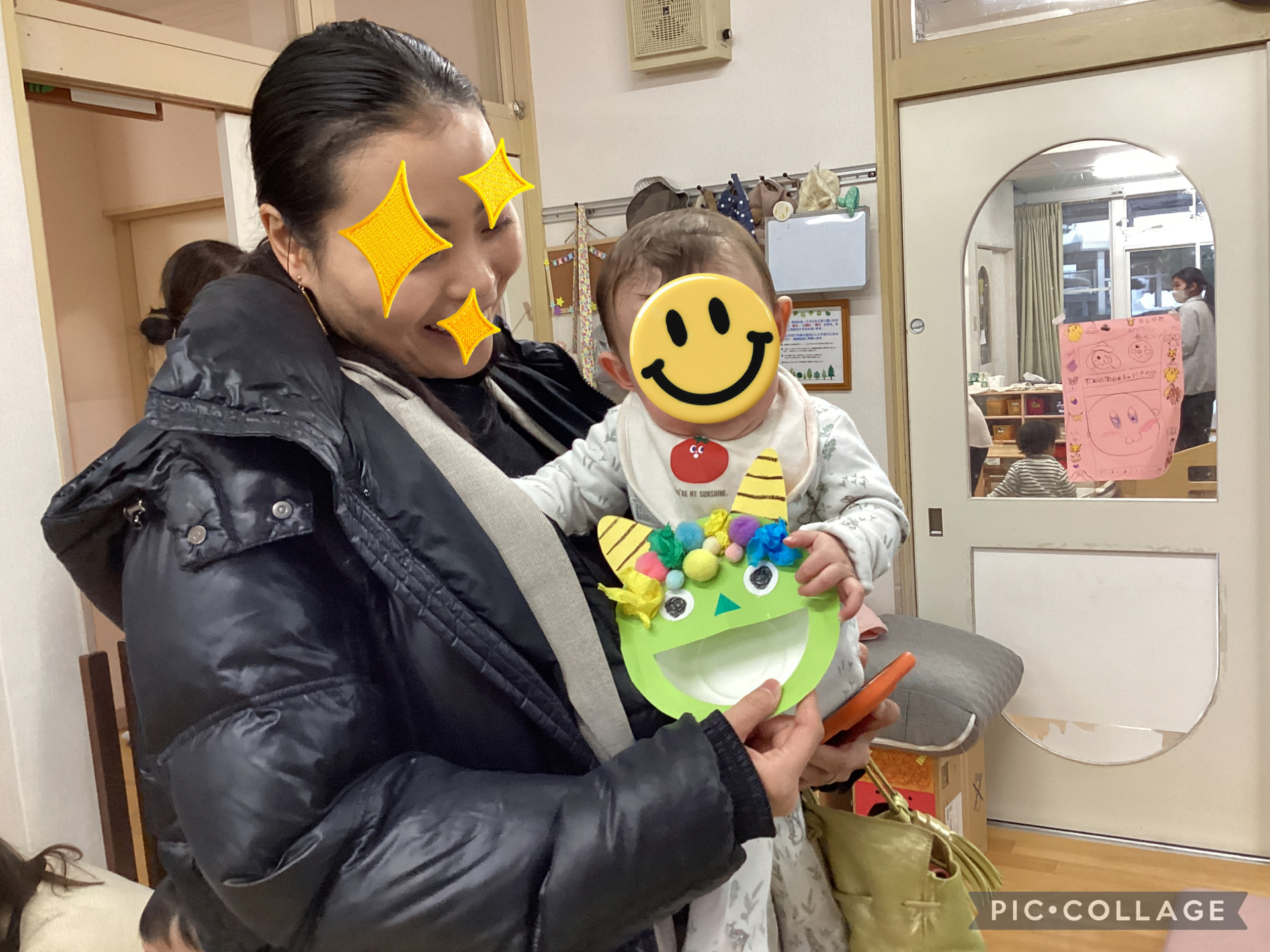 サンサンキッズに遊びに来てくれているお友だちも手作りの鬼の顔の豆入れを持ってご機嫌な様子♡