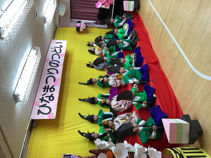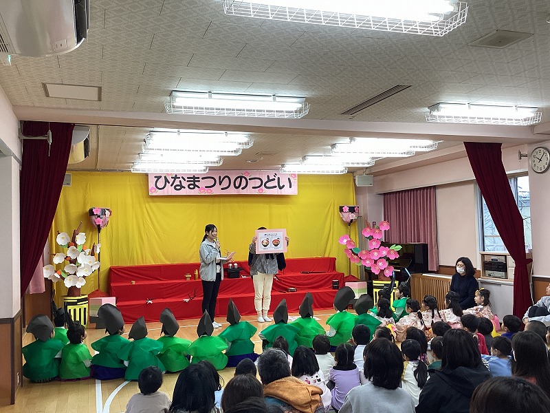 ばら組さんが登場した後は、一緒に歌を歌ったり、ひなまつりクイズをしたり、ばら組さんの踊りを見たりと、楽しみながらひなまつり会に参加する子どもたちでした。