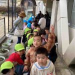 ひまわり、ゆり組と一緒にお散歩に出かけました。今まで色々なところに一緒に出掛け仲を深めてきた子ども達。時にはお兄さん、お姉さんらしく接してあげる姿に成長を感じました。春の自然探しも楽しみたくさんのつくしを見つけました。